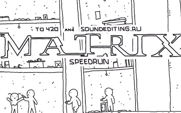 Evidence in a 60-second cartoon that The Matrix might secretly be the best videogame film ever made. The power-ups, running/jumping platforming, the FPS-ness of the assault on building security. It’s all there. Add the 8-bit “victory” musical flourish, and it’s undeniable.